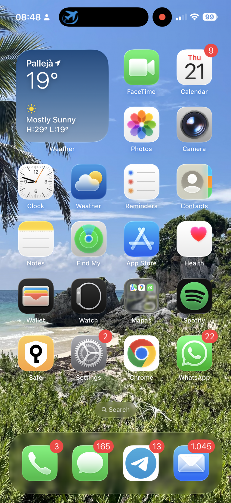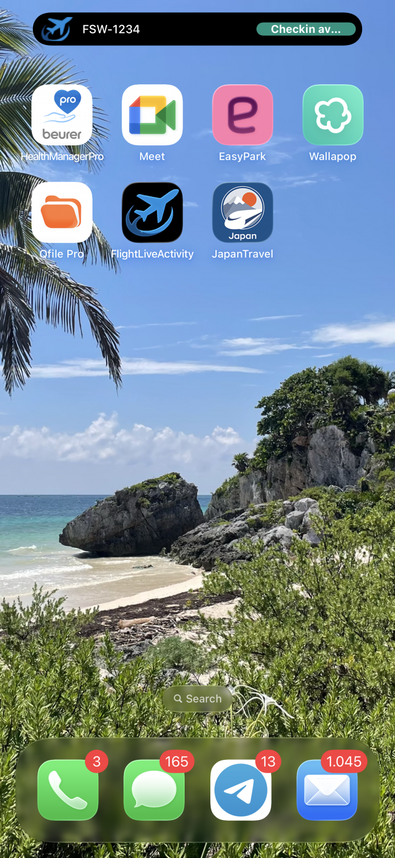 Your Live Activity for a flight reservation isn’t the only one running on the iOS device. In the following screen sequence, you can see that while a screen recording Live Activity is active, a push notification arrives with updated flight landing information.