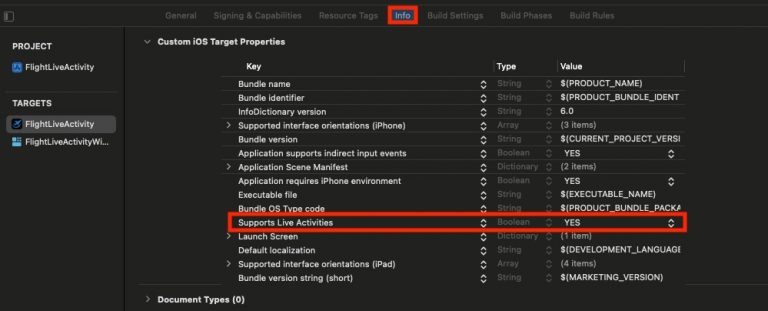We need this because Live Activity state changes are triggered by push notifications. Next, update the Info.plist to support Live Activities:
