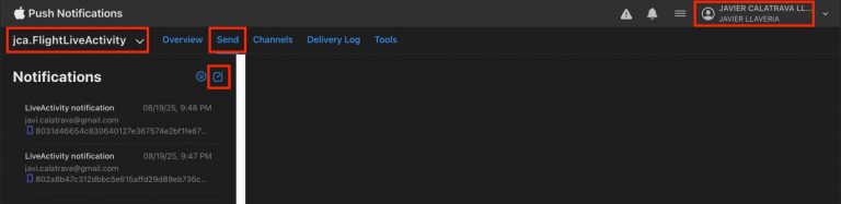 Log in with your Apple Developer account and open the Push Notifications dashboard. Verify that you’ve selected the correct team and Bundle ID, then click Send and choose New.