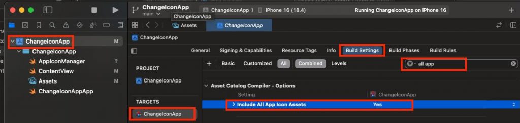 After adding a second app icon asset, select your app target, open Build Settings, and set Include All App Icon Assets to Yes. Note: verify your Xcode version—I’m using Xcode 16, and earlier versions configure this slightly differently.